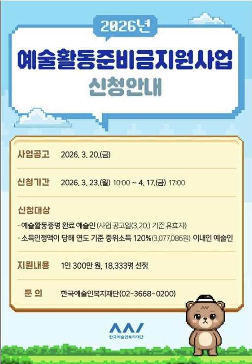 이번 2026년 예술활동준비금은