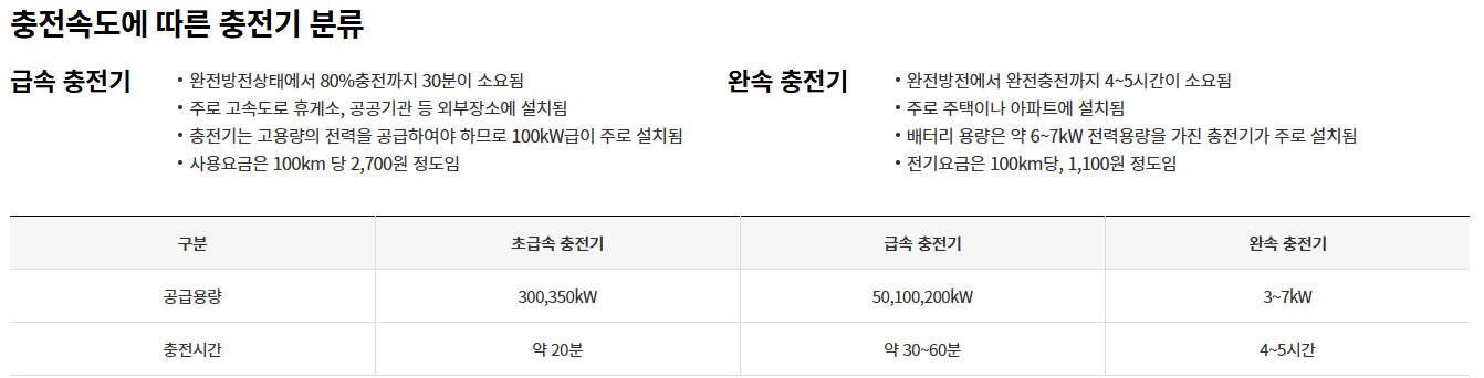- 환경부 공공충전기 → 완속 요금 약 kWh당 300원, 급속 요금 약 kWh당 470원